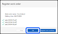 If you click Register and continue, the Register work order screen is displayed, and then you can continue to register a new work order.